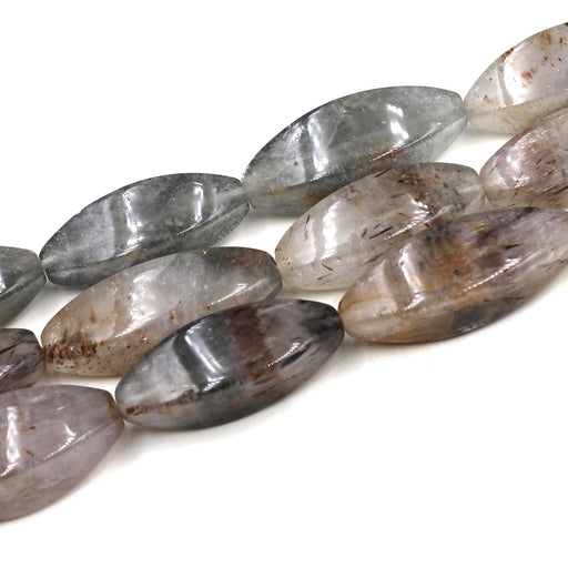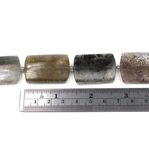 32mm x 13mm 4 sided melon shape cacoxenite beads. Each strand measures 16.5 inches long.