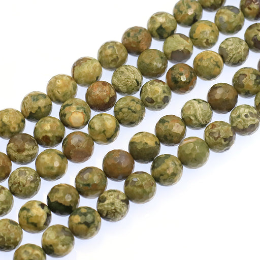 Beautiful 16mm faceted rhyolite rounds. Many shades of green with brown and gray matrix.