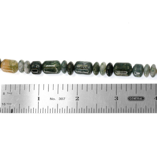 (agate086) 6mm-9mm Graduated Gold Moss Agate Barrels and Roundeles