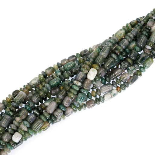 7mm x 4mm moss agate barrels on an approx 16 inch strand