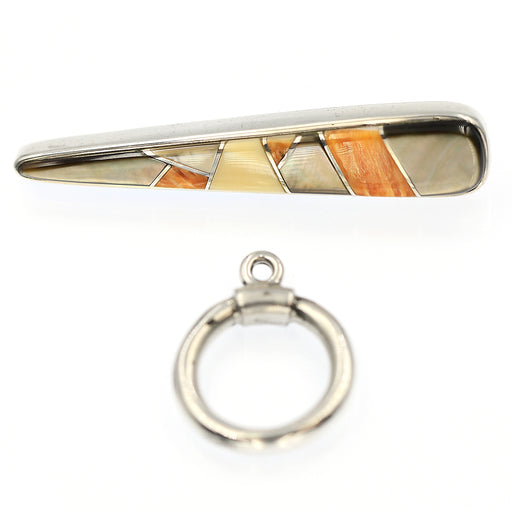 Bronze Inlay Toggle with Turquoise and Spiny Oyster 38x10mm. 12mm Diameter.