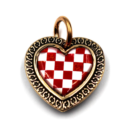 (bzp377-N0335S) Bronze Checkerboard Heart Pendant