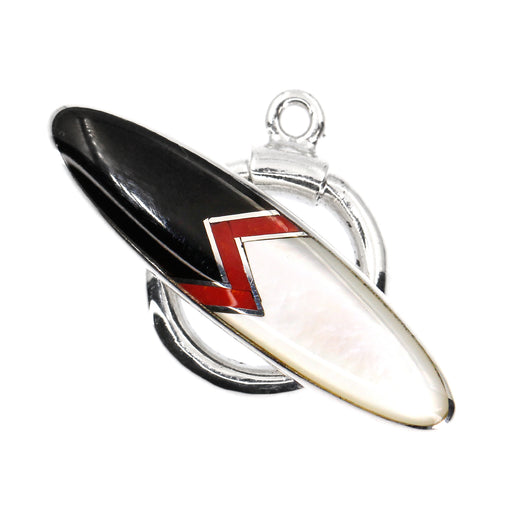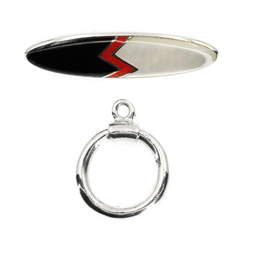 Inlay toggle designed by Kelly Charveaux. The toggle's average size is 10mm wide by 35mm long. The black onyx borders the mother of pearl adding a ...