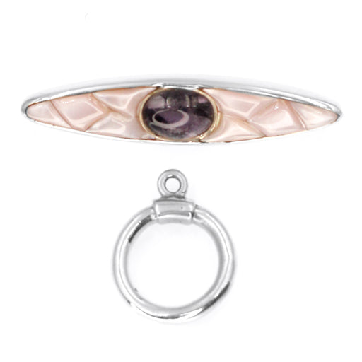 Average size is 42 to 44 mm long by 9 mm wide. Enhance your jewelry designs with the ITG-059 Pink Mother of Pearl and Amethyst inlay toggle from Sc...