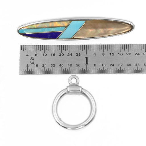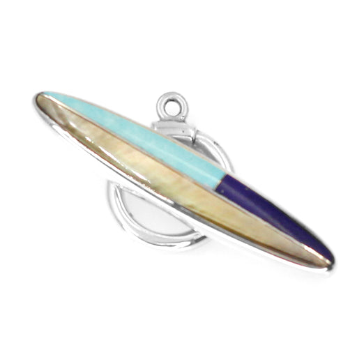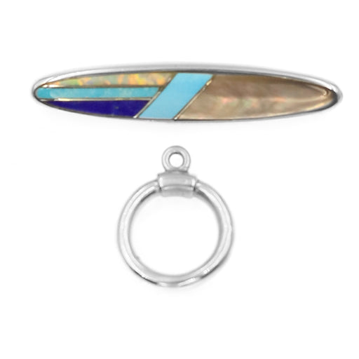 Inlay toggle designed by Kelly Charveaux. The toggle's average size is 10mm wide by 35mm long. The black onyx borders the mother of pearl adding a ...