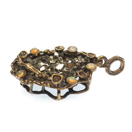 (OOAK013) Bronze, Pyrite and Opal Pendant