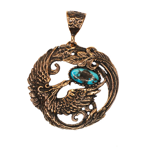 (OOAK012) Bronze and Turquoise Phoenix Pendant