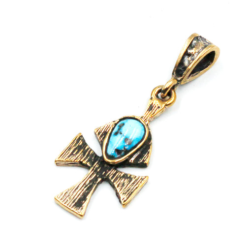 (OOAK020) Bronze Cross with Turquoise Inlay