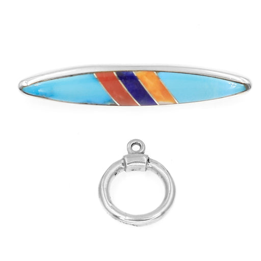 This striking (ITG-320) Blue Opal Inlay Toggle Clasp is a beautiful and unique addition to any jewelry design. The elongated, oval toggle bar featu...