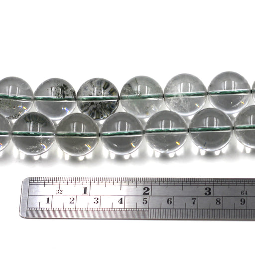 Beautifully polished phantom 18mm quartz.  Beads are mostly clear with slight inclusions.  Each strand measures 16 inches long.