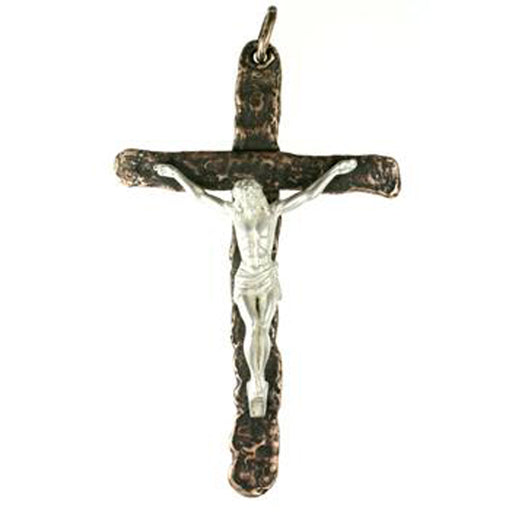 (bzp324) Solid Bronze cross w/S. Silver Jesus