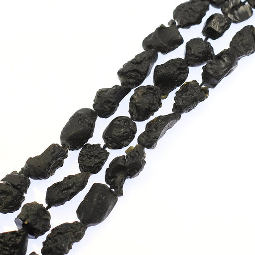 Approximately 15.5" of stunning Tektite chunk beads. Tektites are natural glass formed from terrestrial debris ejected during meteorite impacts.