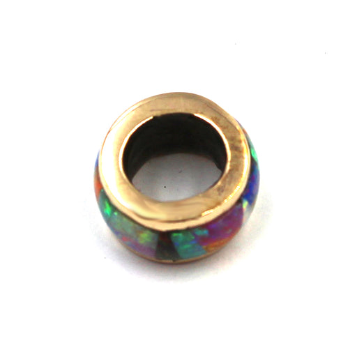 This versatile bronze opal bead measures 1/4 inch wide with an 8mm opening.  The diameter measures 14mm.