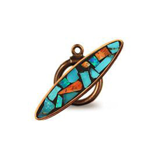 Bronze Inlay Toggle with Turquoise and Spiny Oyster 38x10mm. 12mm Diameter.