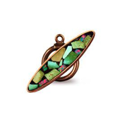 (bzct054-N011) Bronze Inlay Toggle with Turquoise