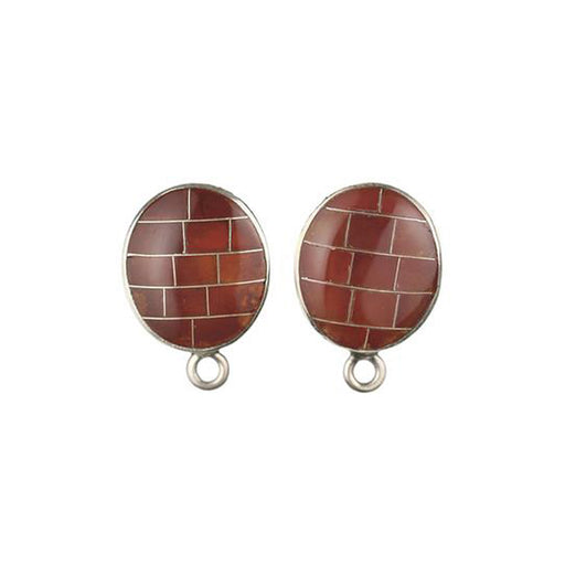 (ET-010) Carnelian Oval Inlay Earring Top
