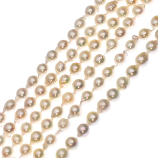 Approximately 15.5" strands of beautiful fresh water pearls. The beads are of various sizes from 8mm to 11mm in diameter.