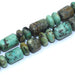 African turquoise beads showcase warm earth tones with striking veining characteristic of this semi-precious stone. These barrel roundelle beads feature a graduated size progression from 7mm to 9mm, creating visual interest and dimensional flow in jewelry designs. The slightly tapered barrel shape offers versatility for stringing techniques and mixed-media applications. Each 18-inch strand provides ample material for bracelets, necklaces, or accent work. Ideal for beaders seeking authentic natural stone with distinctive patterning and moderate hardness suitable for various jewelry-making projects.