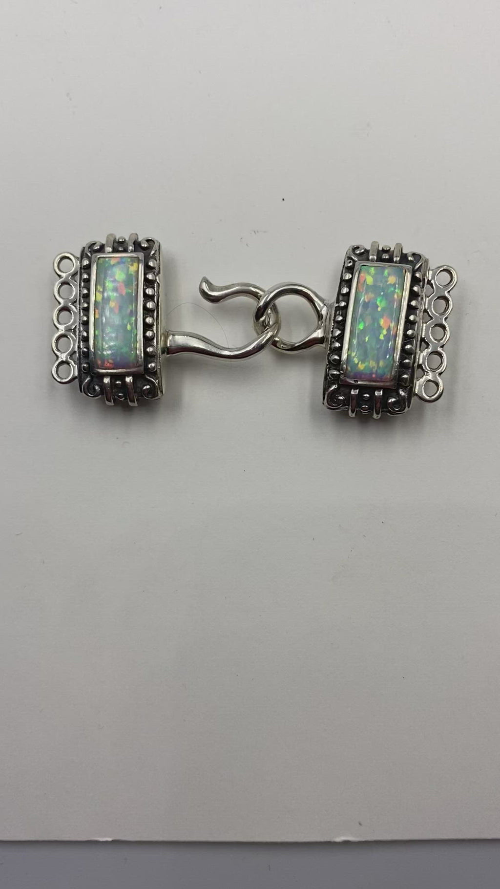 Sterling Silver Syn.blue opal hook and eye multi strand double sided 5 strand clasps.
