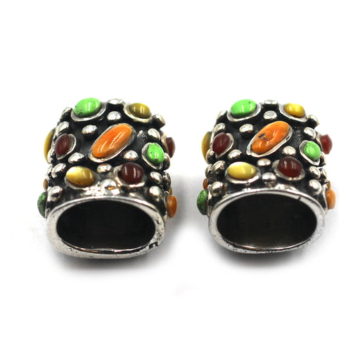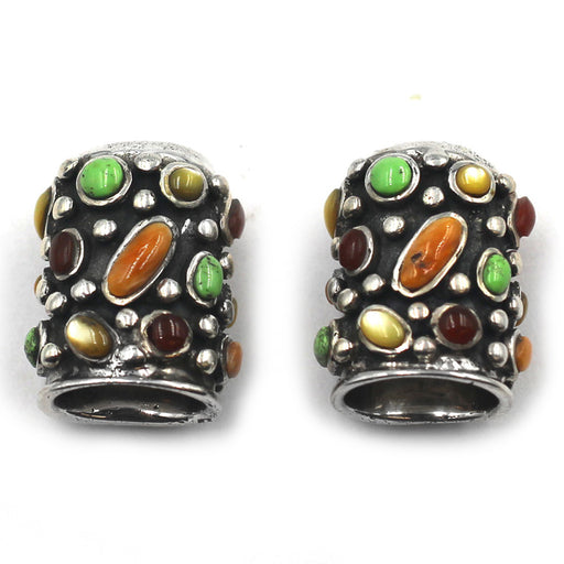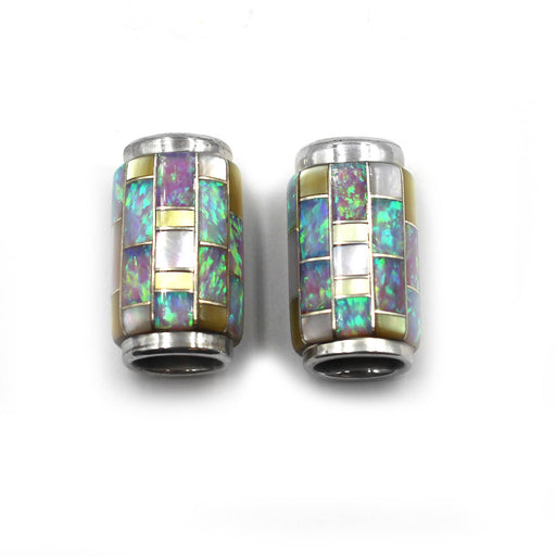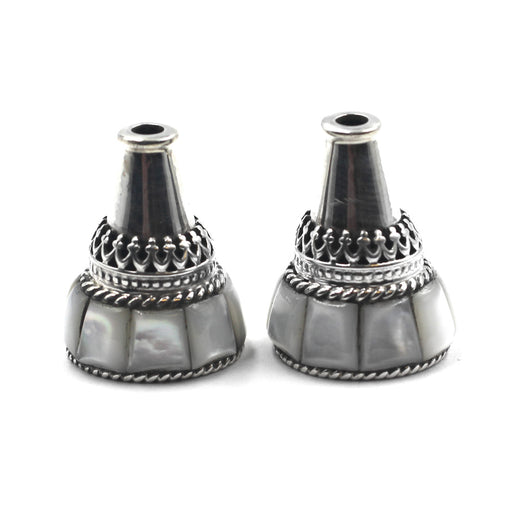 These sterling silver mother of pearl inlay cones can accommodate a large number of small strands or several larger strands of beads.
