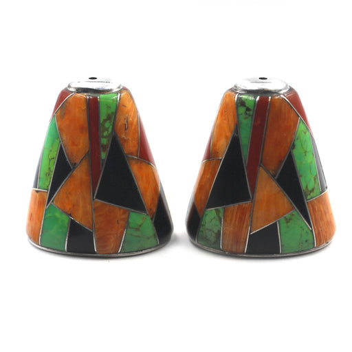 These large capacity inlay cones have coral, gaspeite, spiny oyster, and black onyx inlay on all sides.