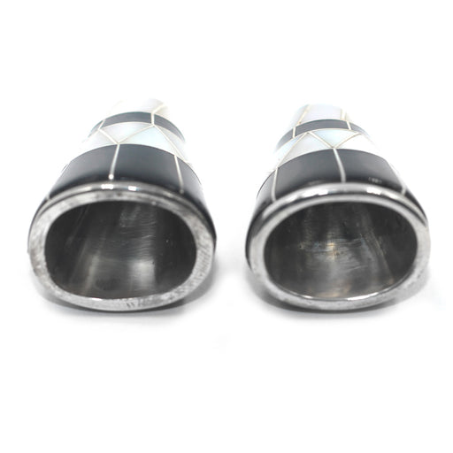 Large sterling silver mother of pearl and black onyx inlay cones.