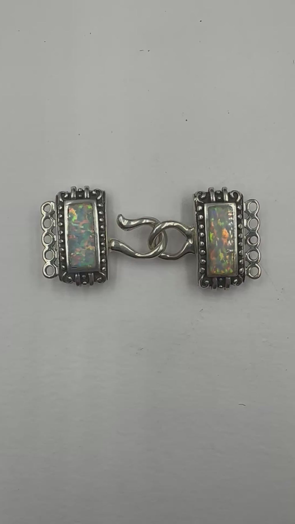 Beautiful Opal inlay is on all sides of this two part clasp.