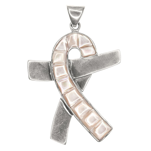Sterling Silver pendant with inlaid Pink Mussel Shell 52mm tall by 34mm wide.