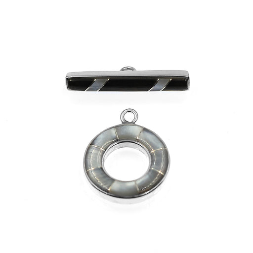 Black lip mother of pearl inlay toggle clasp in sterling silver. Enhance your jewelry collection with our Black Lip Toggle Set. Made with high-qual...