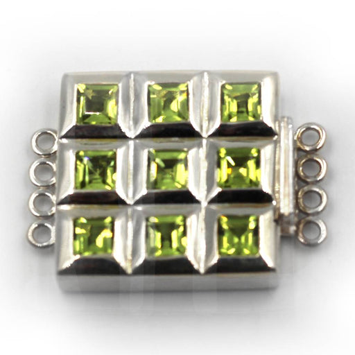 Experience the luxurious beauty of (JC-003) 4 Strand sterling silver Peridot Box Clasp, featuring 9 exquisite faceted square peridot stones measuri...