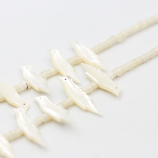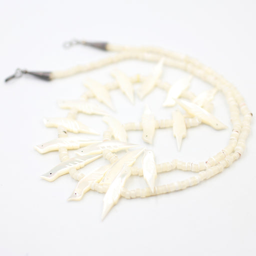 Approximately a 27" long necklace of mother of pearl fetishes. Roughly 18 fetishes should be on each necklace. The ends of the necklace are a base ...
