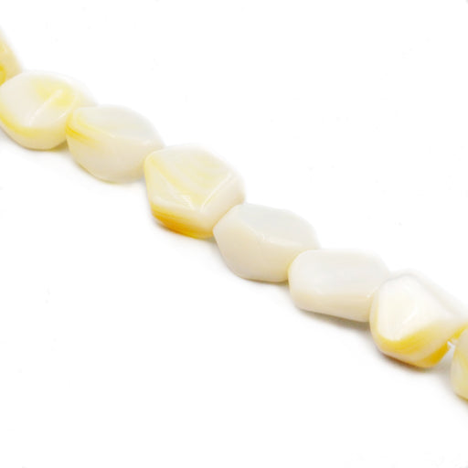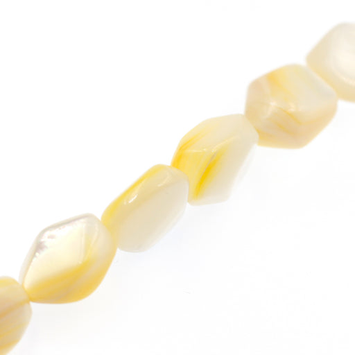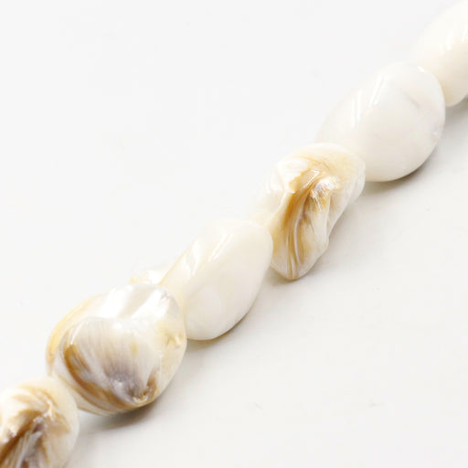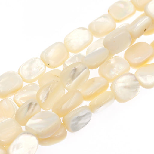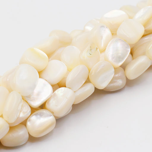 A beautiful 16" long strand of mother of pearl nugget style beads. They are generally oval in shape but the size has small variants between each bead.