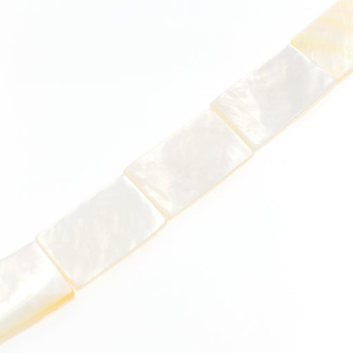 A beautiful 16" long strand of mother of pearl rectangles. Each bead is approximately 15x10mm in size.