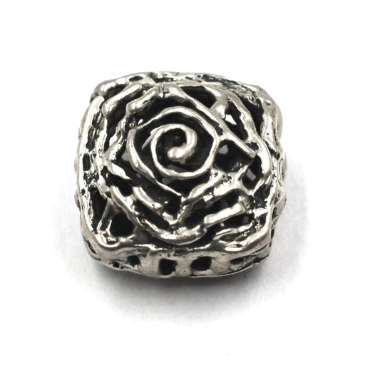 This artisan-crafted sterling silver bead showcases organic, sculptural dimensionality achieved through lost wax casting. The freeform puffy square...