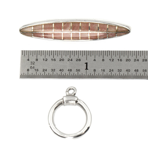 Average size is 42-44 mm long by 9mm wide. This Toggle has pink mussel at its core and brown lip mother of pearl surrounding it. The metal is sterl...