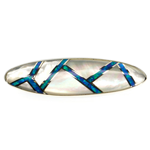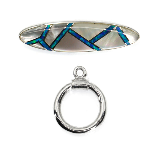 Inlay toggle designed by Kelly Charveaux. The toggle's average size is 10mm wide by 35mm long. The created opal cuts through mother of pearl adding...