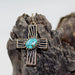 Old World Bronze ( Scottsdale Bead) Cross W/ Spider web Turquoise.