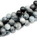 Wispy smoke looking Gray/Black Hawkeye stone beads measuring 8mm. 15 1/2 inch strands.