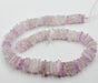 Graduated strand of Kunzite tumbled slices. Light Lilac colors. Pictures shows deeper colors than actual.