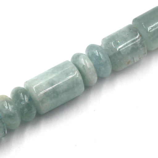 View full detailsGraduated barrel roundelle aquamarine beads in a complete 18.5-inch strand, with sizes progressing from 6mm to 8mm. These polished gemstone beads s...