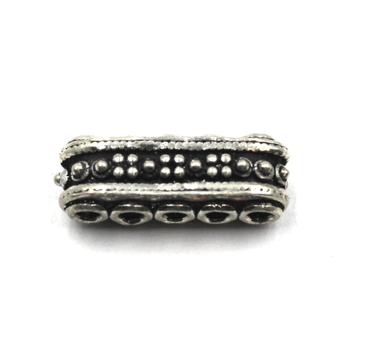 This sterling silver spacer bar features five precisely aligned holes, making it an essential component for multi-strand jewelry designs. Measuring...
