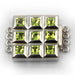 Experience the luxurious beauty of (JC-003) 4 Strand sterling silver Peridot Box Clasp, featuring 9 exquisite faceted square peridot stones measuring 1 1/4 x 1 inch. With its built-in safety clasp and AAA quality, this piece is both elegant and secure. Feel the weight of its high-quality craftsmanship and add a touch of luxury to your jewelry collection today!