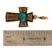 Handcrafted bronze cross with old hand cut round Kingman Turquoise cabochon measuring appx. 10 mm. ( Beautiful blue color and natural pyrites in the stone)